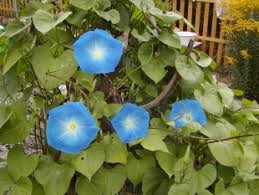 Ипомея трехцветная, Ipomoea tricolor, Morning glory - однолетние ползучие растения. Цветы держатся всего один день. Растение может пересеваться. Требуют открытого солнца и хорошо дренированной земли, переносят бедные почвы.